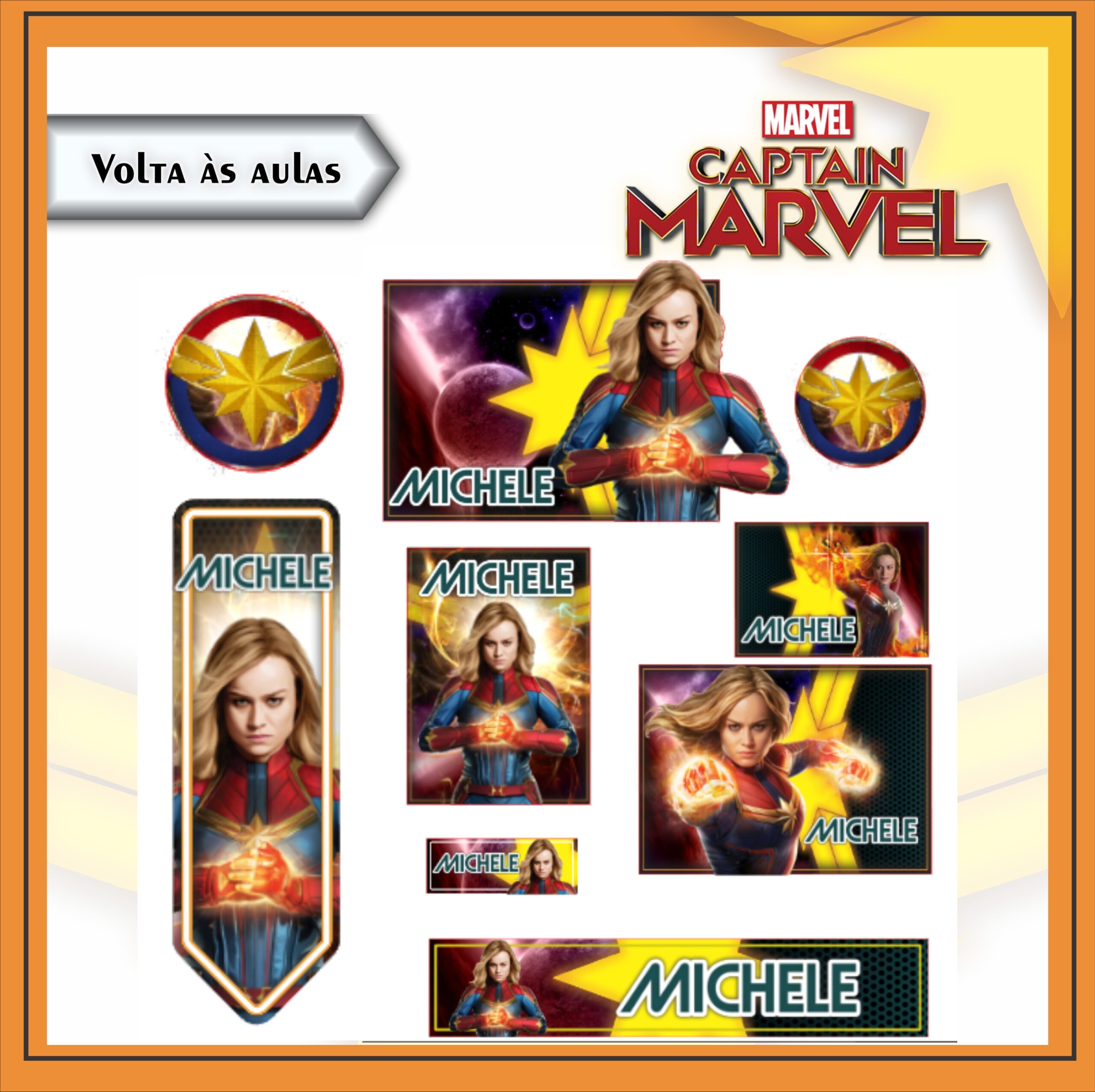 Arquivo Digital Etiquetas Escolares Captain Marvel Editável