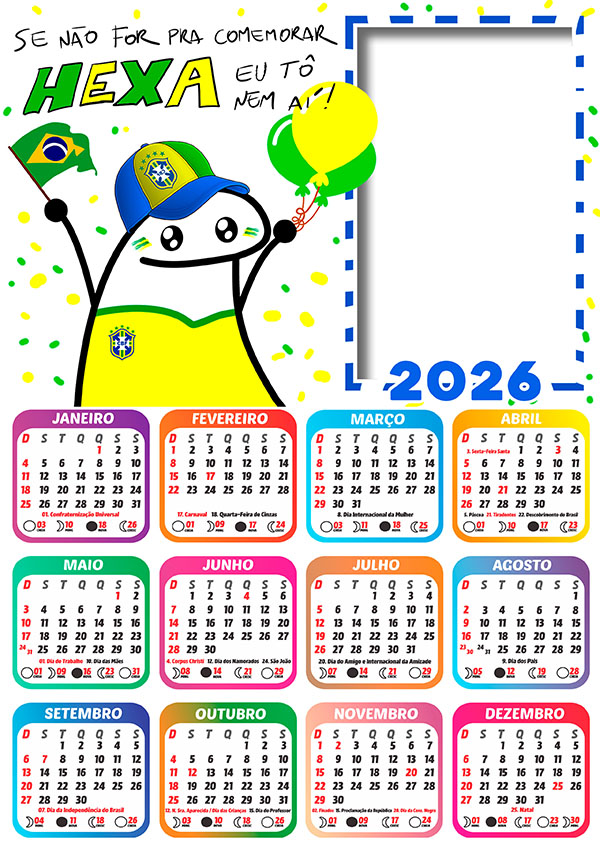 🎉 Calendário 2026 PNG – Pronto para Montagem de Foto e Imprimir em Alta Qualidade! 🎉