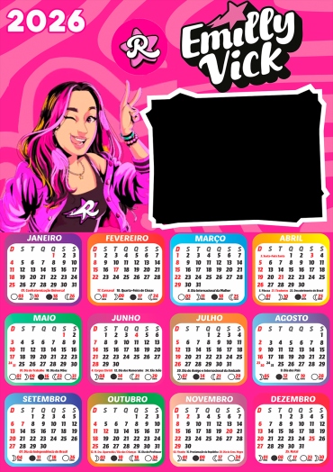 Calendário 2026 Emilly Vick PNG Arte Digital