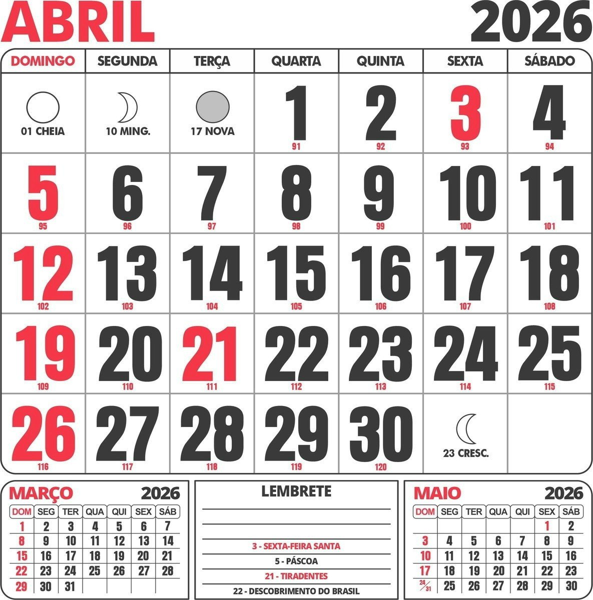 Calendário 2026 para Imprimir com Feriados A0 Até A6 em PDF + Brindes